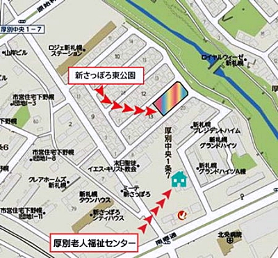 〒004-0054 札幌市厚別区厚別中央4条3丁目3‐6(信濃会館併設) TEL.011-891-3907 厚別中央まちづくりセンター所管区域図
